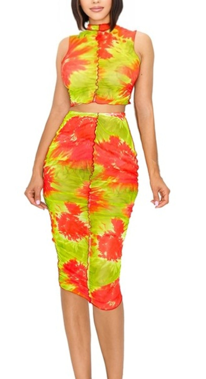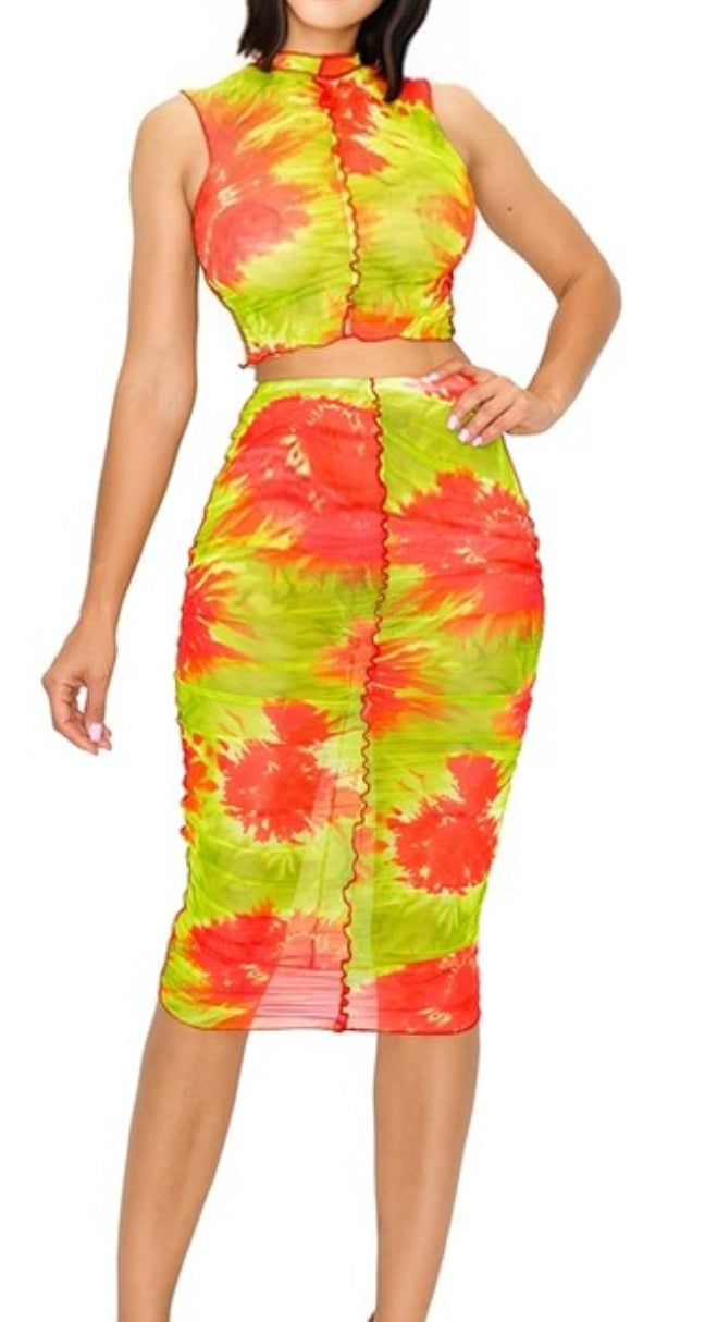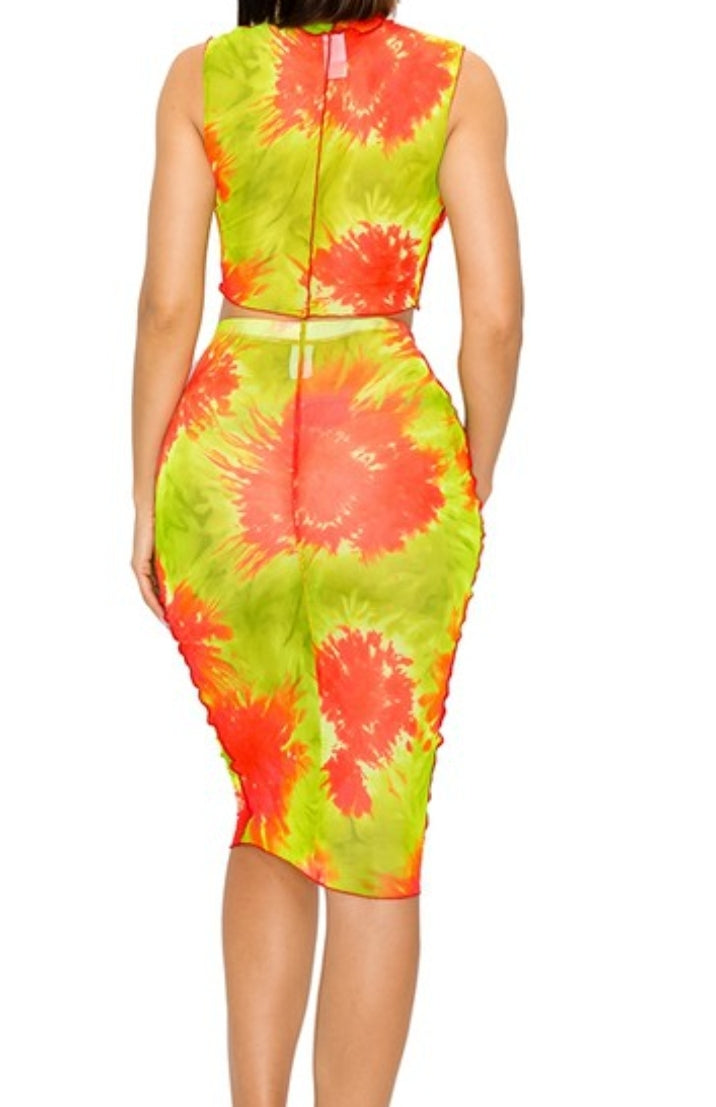 Lime in My Cup Sleeveless see-thru Mesh 2Piece Skirt Set